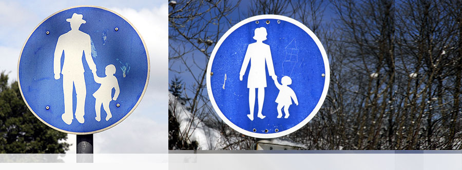 Das Verkehrszeichen 239/Sonderweg Fußgänger wurde 1953 in der Bundesrepublik Deutschland eingeführt. Abgebildet war, wie in den Nachbarländern Österreich, Schweiz, Italien und Tschechoslowakei noch heute, eine blaue Ronde mit der weißen Silhouette eines Mannes in Hut und Anzug, der rechts ein kleines Mädchen an der Hand führt. Mit Entscheidung vom 28.4.1970 wurde es durch den damaligen Bundesverkehrsminister Georg Leber abgeschafft und im Zuge der Einführung einer neuen StVO im selben Jahr gegen eine Ronde mit der Silhouette einer Frau ausgetauscht; das Kind blieb unverändert.