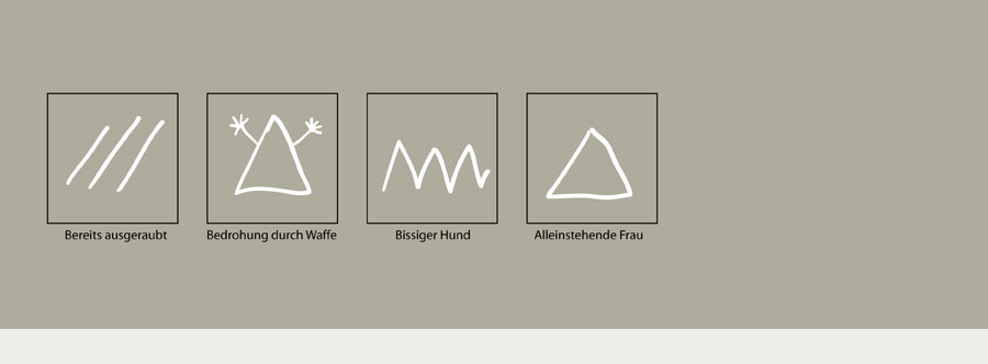 Wurden diese Zeichen früher am ehesten an Hauswänden, Türstöcken, Briefkästen oder neben dem Klingelknopf angebracht, kann man sie heute auch an ganz anderen Orten finden. So sollen in den 1980er Jahren in Italien Fernlastzüge mit wertvoller Fracht verschwunden sein, nachdem sie zuvor mit Geheimzeichen gekennzeichnet worden waren.
